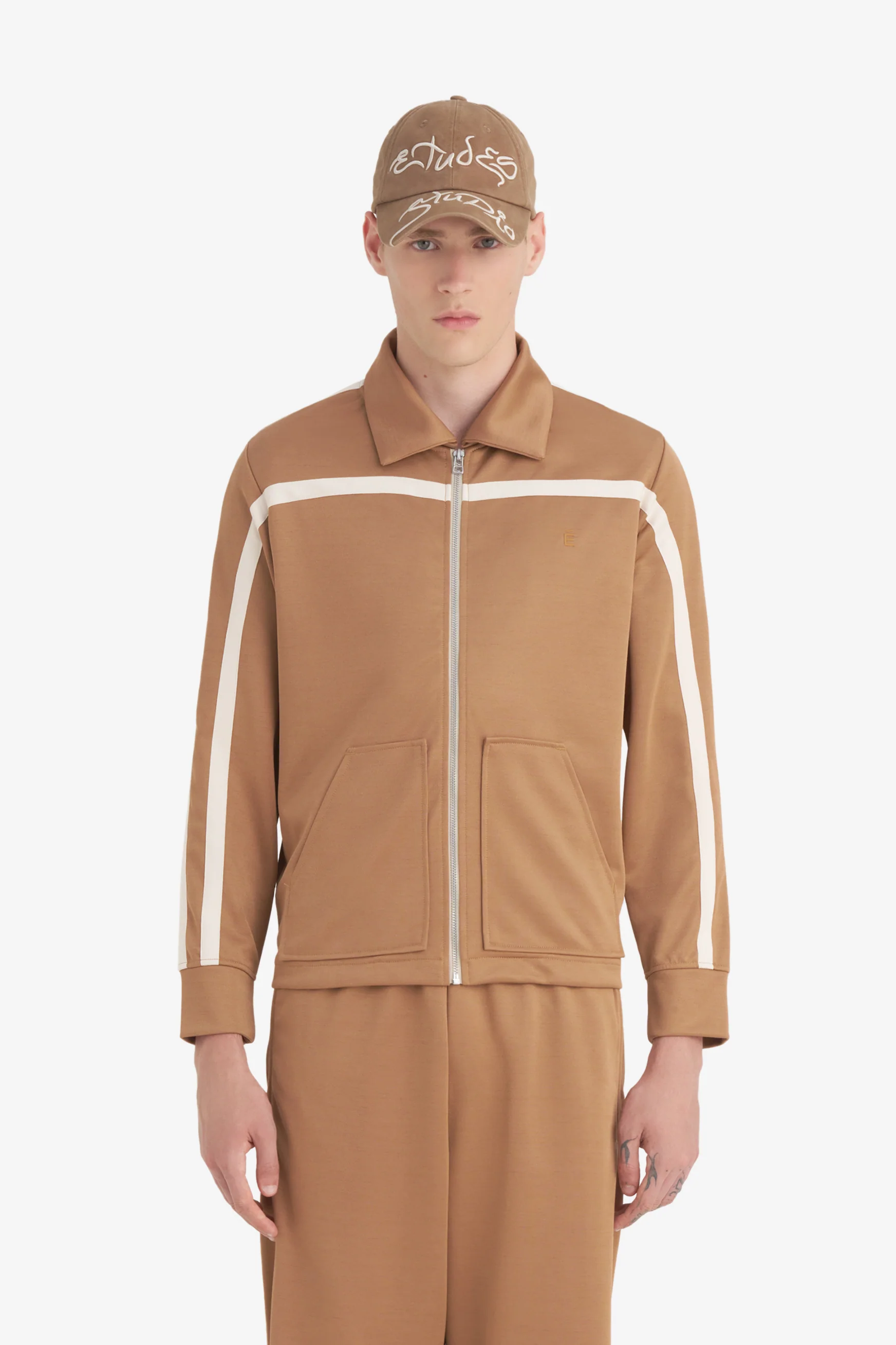 The Tracksuit Jacket is a double face jacket with a front zipped closure and patched pockets. Made in Portugal, it comes with tape application on body and sleeves and a tonal É logo is embroided on left front.